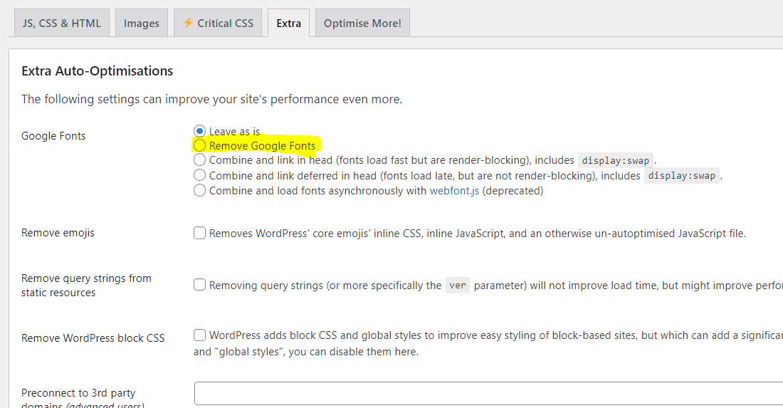 Über ein Plugin wie AutoOptimize kann man zB die Google Fonts danach komplett sperre