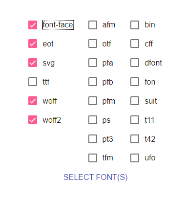 Die Option font-face mit auswählen rate ich an da man dann eine CSS Datei bekommt wo aufgelistet ist wie man die Fonts integrieren kann.