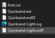 Ausserdem benenne ich die Font Datei um um es leichter zu haben also zB habe ich aus Quicksand-VariableFont_wght.ttf ganz einfach Quicksand.ttf gemacht ehe ich sie zum konverteieren hoch geladen habe.